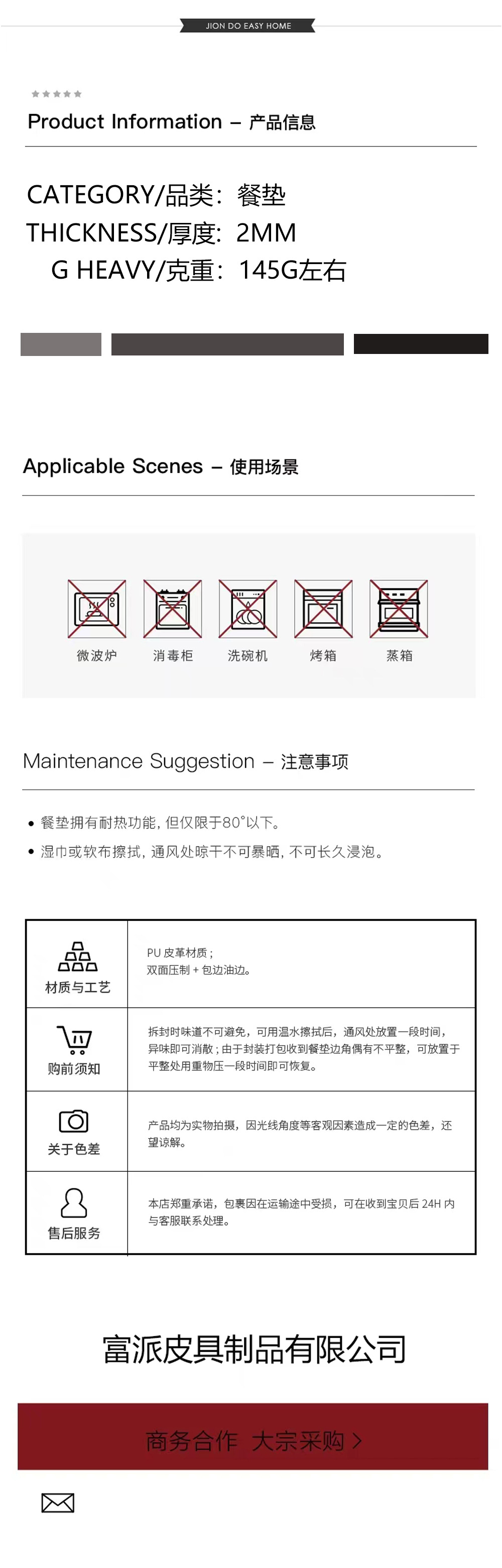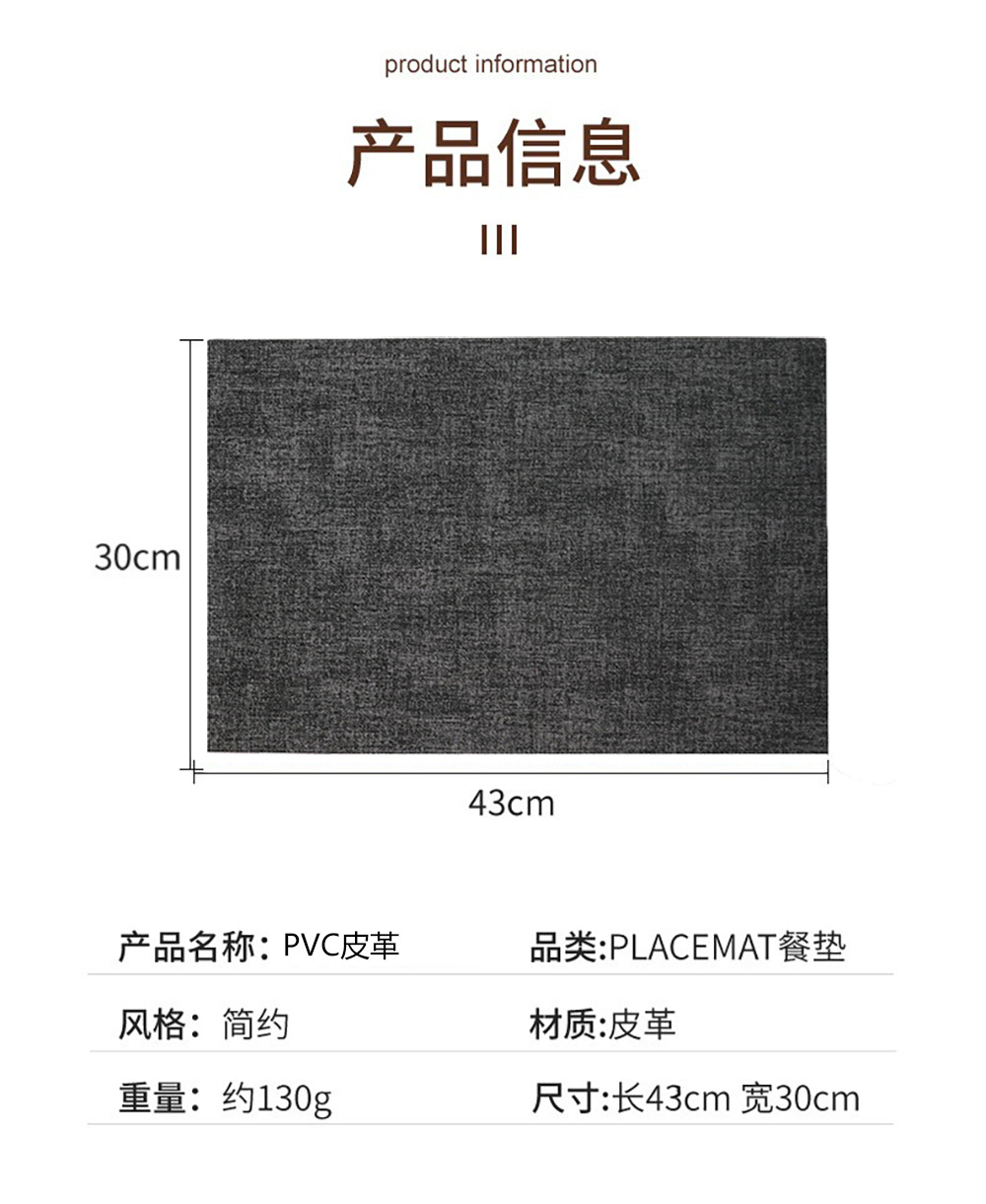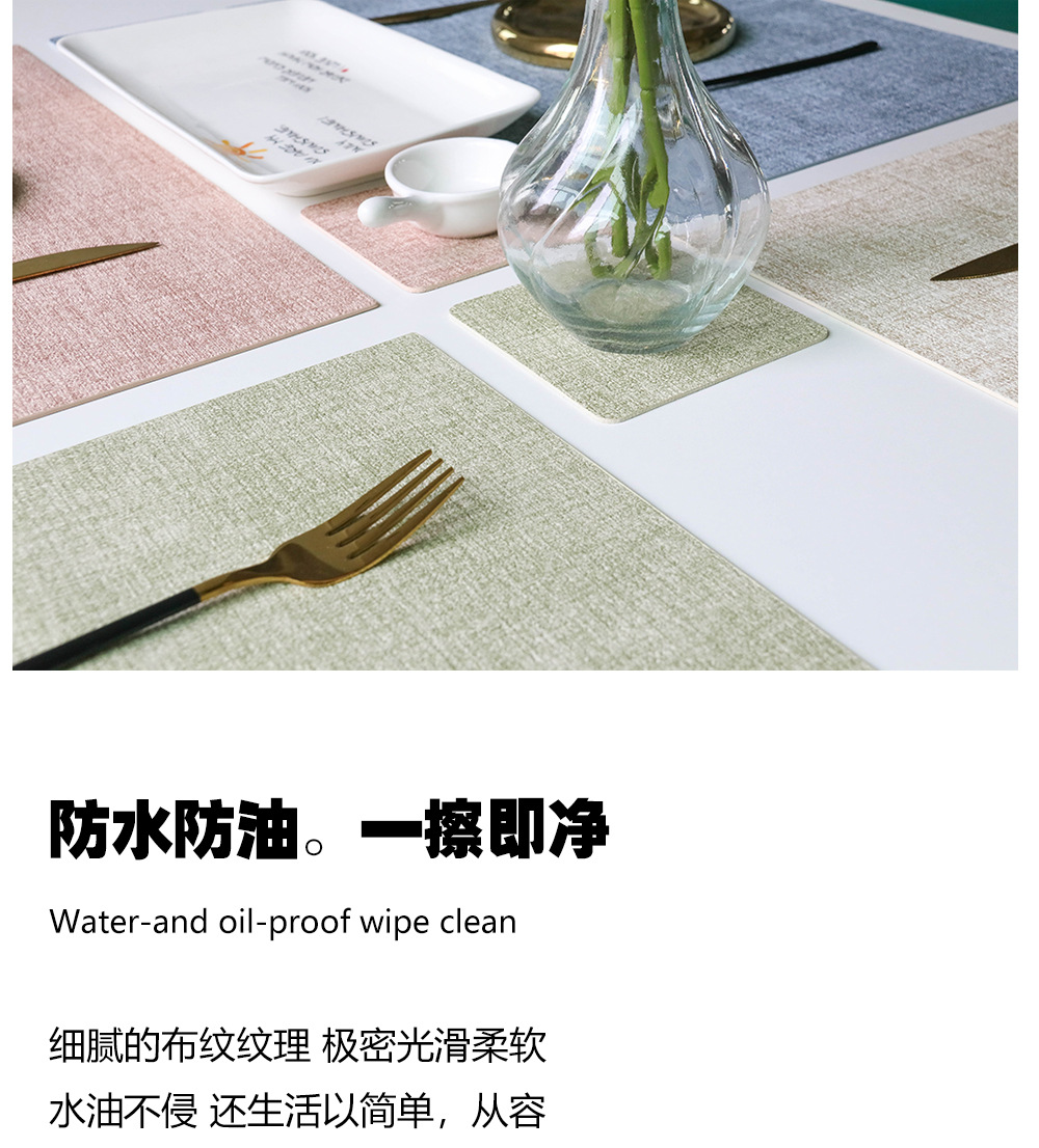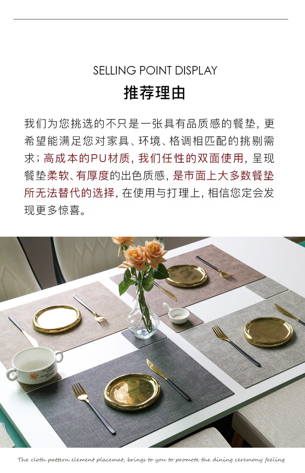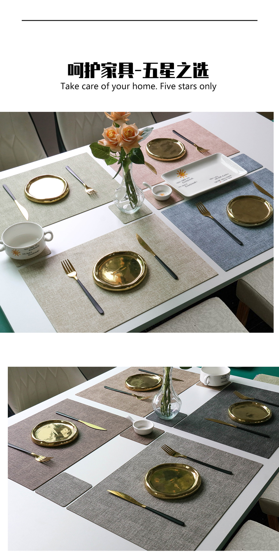 Spot Wholesale Nordic Style Cloth Grain Square Leather Placemat Double-Sided Home Hotel Western Placemat Waterproof Insulation Mat